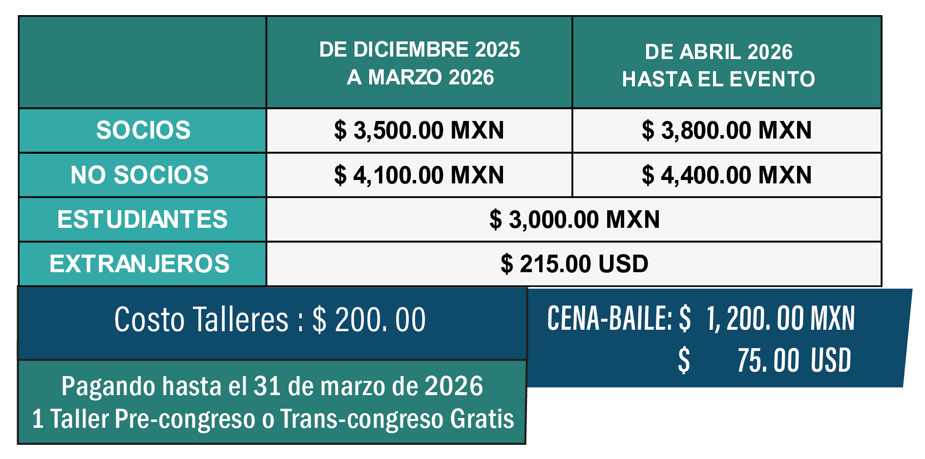COSTO POR TALLER: $ 200.00 MXN